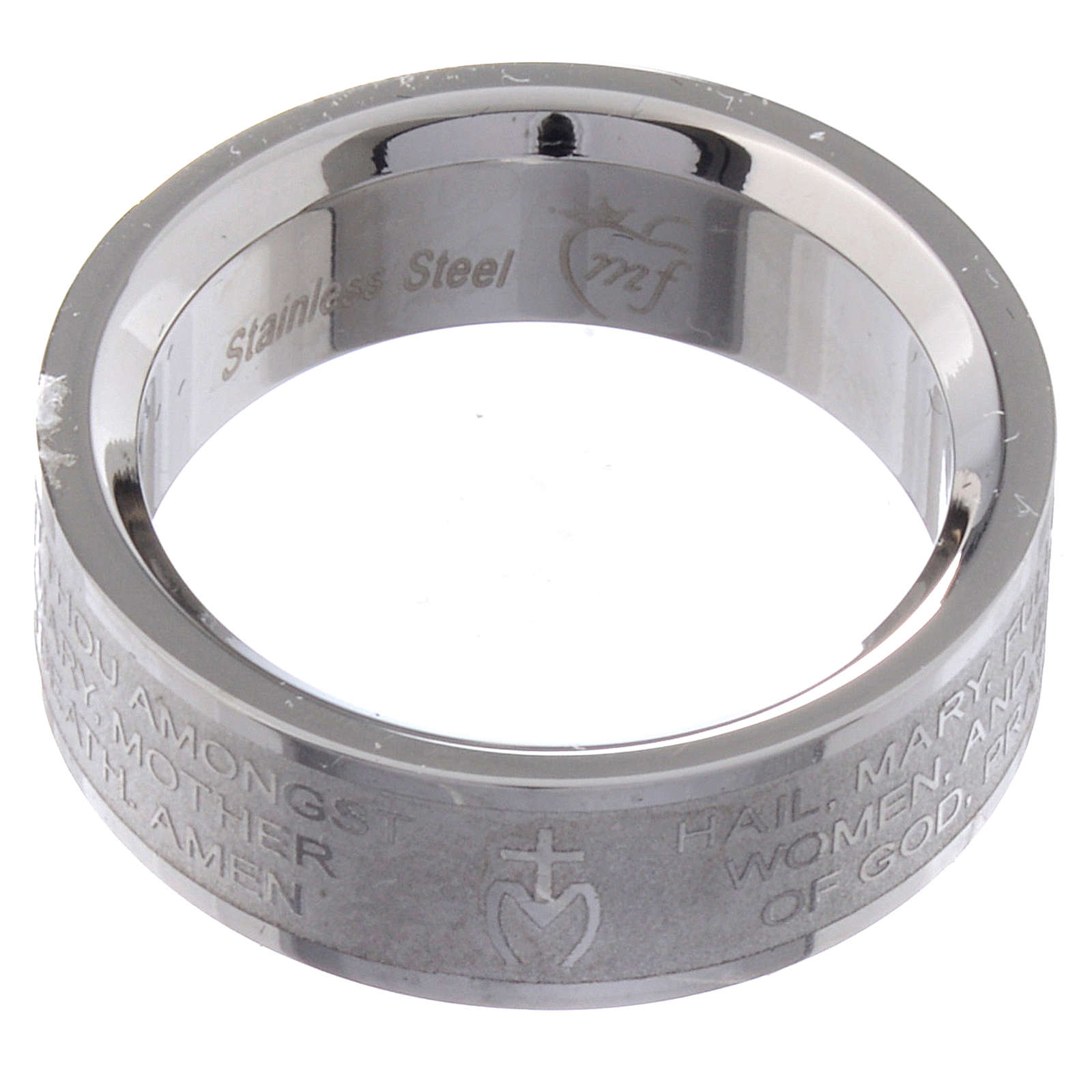 Anel Ave Maria INOX LUX INGLÊS. Anel em aço inox 304 brilhante e inalterável com gravadura em relevo da oração Ave Maria em inglês.