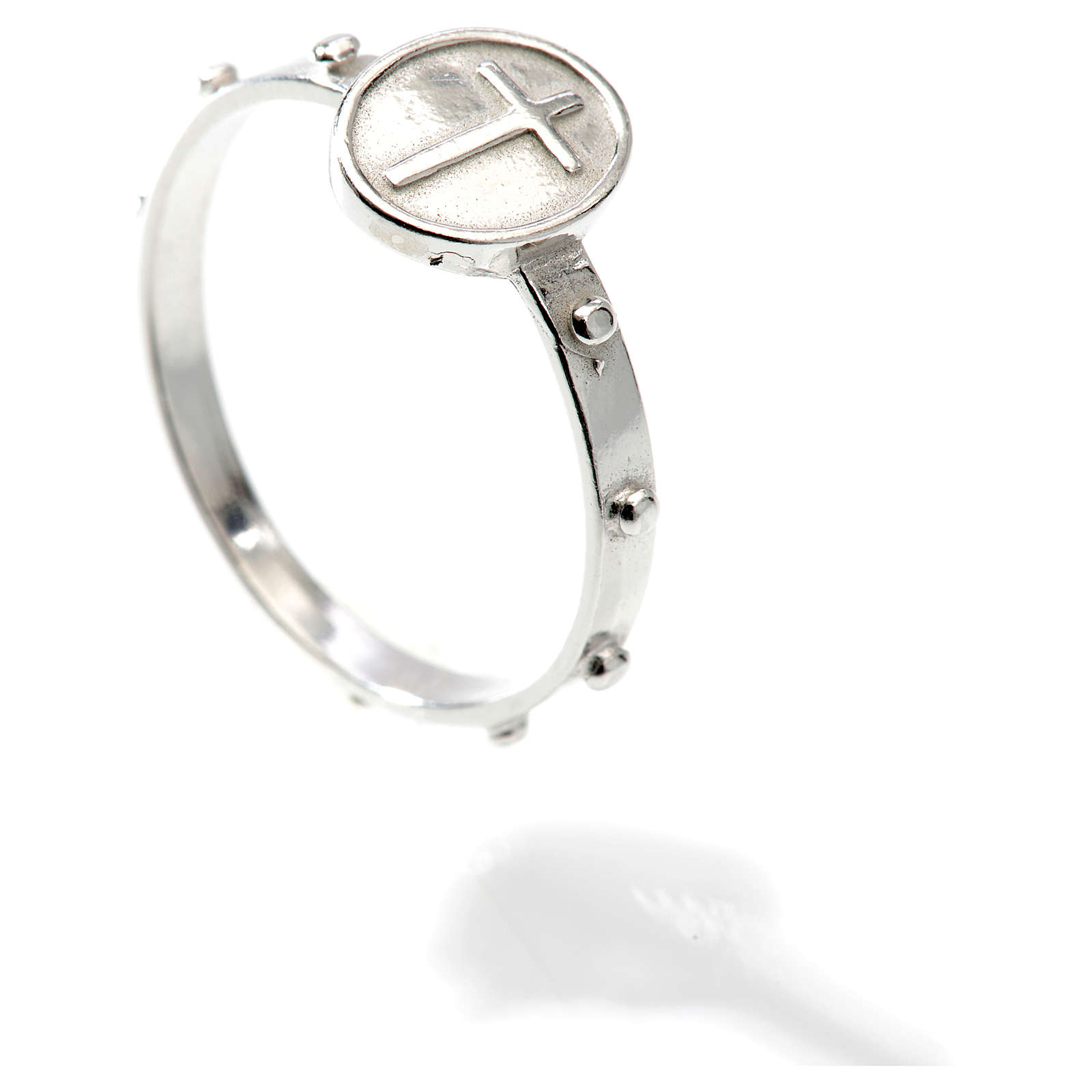 Terço prata 925 dezena. Anel dezena em prata 925 com medalha decorada de uma cruz em relevo.