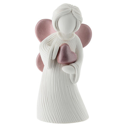 Anjinho resina branca 12 cm coração e asas cor-de-rosa brilhante.