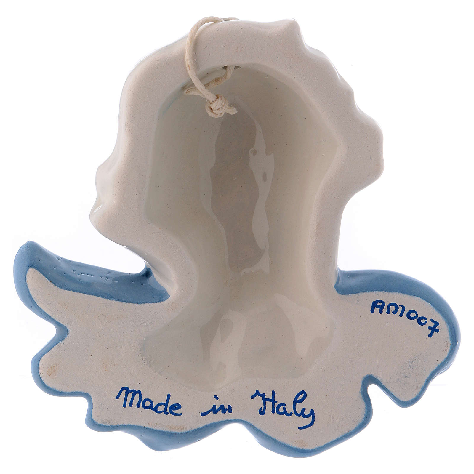 Rosto anjinho para pendurar cerâmica branca Deruta asas azuis 10x10x5 cm