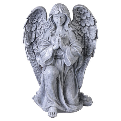 Anjo ajoelhado para exterior 50 cm em resina efeito pedra cinzenta.