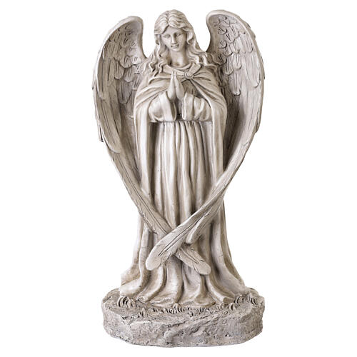 Anjo em oração para exterior 40 cm em resina com acabamento natural.