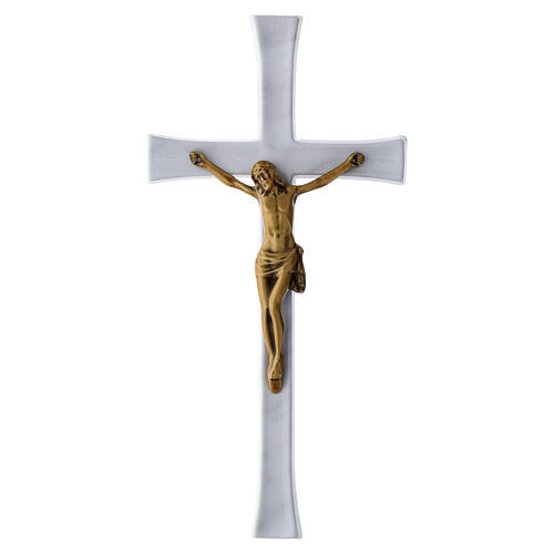 Cruz de parede com Cristo, acabamento em mármore Carrara.