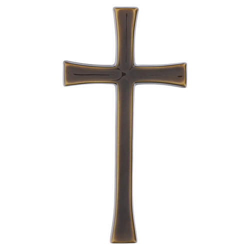 Cruz de parede de linha afilada com acabamento em olmo e fixação mural.