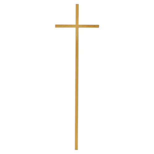 Cruz funerária de parede em acabamento bronze com efeito madeira.