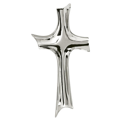 Cruz moderna de parede em aço inoxidável brilhante cera perdida para exterior 20 cm.