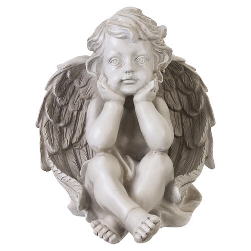 Estátua de querubim sentado para exterior 30 cm em resina clara.