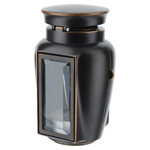 Lanterna ideal para velas votivas, feita de latão com acabamento em bronze brunido e pátina protetora para máxima resistência aos elementos e uso externo. Adequada para velas de até 6 cm de diâmetro e 14 cm de altura.