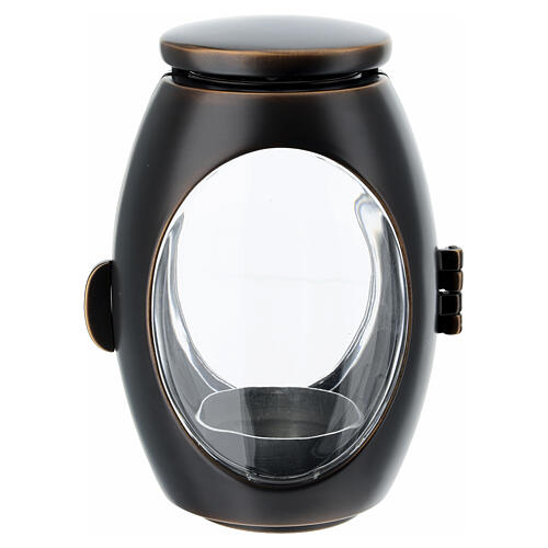 Lâmpada para cemitério bronze esmalte preto para vela votiva de 6 cm.