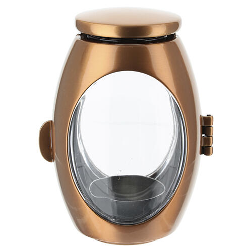 Lâmpada para vela oval em bronze com janela para velas de 6 cm de diâmetro
