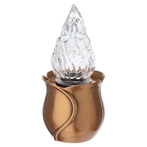 Lâmpada porta-chama para cemitério em bronze formato de flor 19,5x9x9 cm.