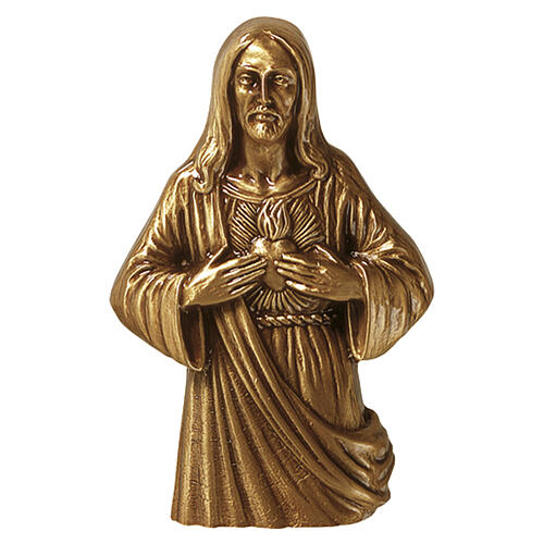 Placa Busto do Sagrado Coração de Jesus em bronze para exterior 15x10 cm