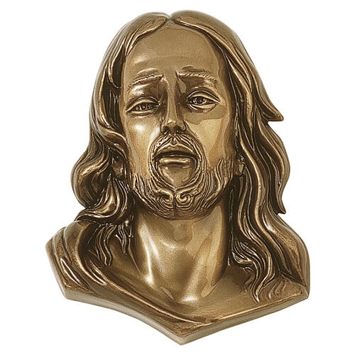 Placa em alto-relevo de bronze do rosto de Cristo para exterior 10x8x4 cm