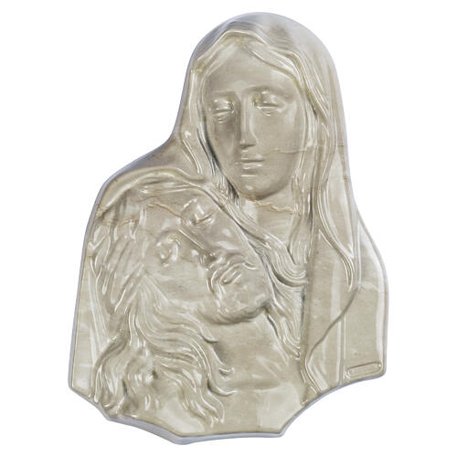 Placa Pietà para exterior acabamento mármore botticino.