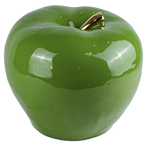 Urna cinerária maçã verde cerâmica esmaltada detalhe dourado.