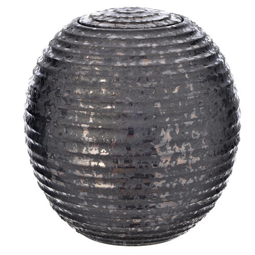 Urna cinerária porcelana esmaltada modelo Nero Tecno. Urna funerária esférica realizada à mão na Itália usando um torno, esmaltada com óxido de ferro e acabada com a técnica do terceiro fogo.