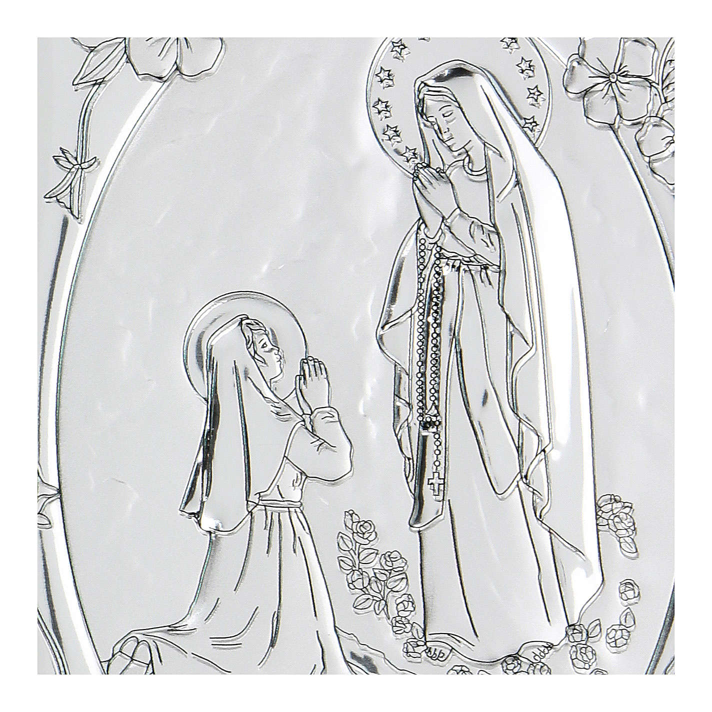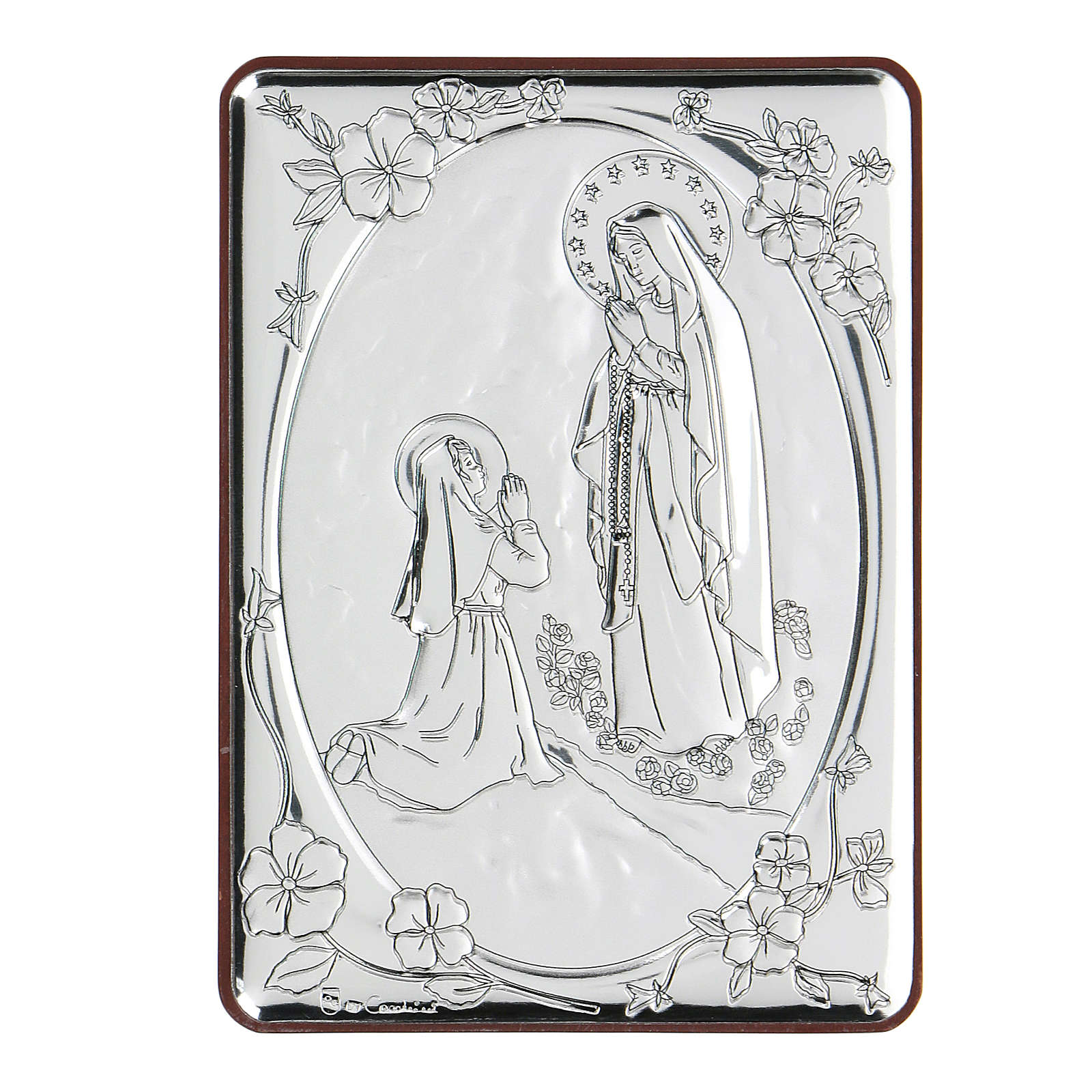 Baixo-relevo bilaminado Aparição Nossa Senhora de Lourdes 10x7 cm. Artigo realizado e decorado em prata bilamidada com acabamento contra oxidação, de
