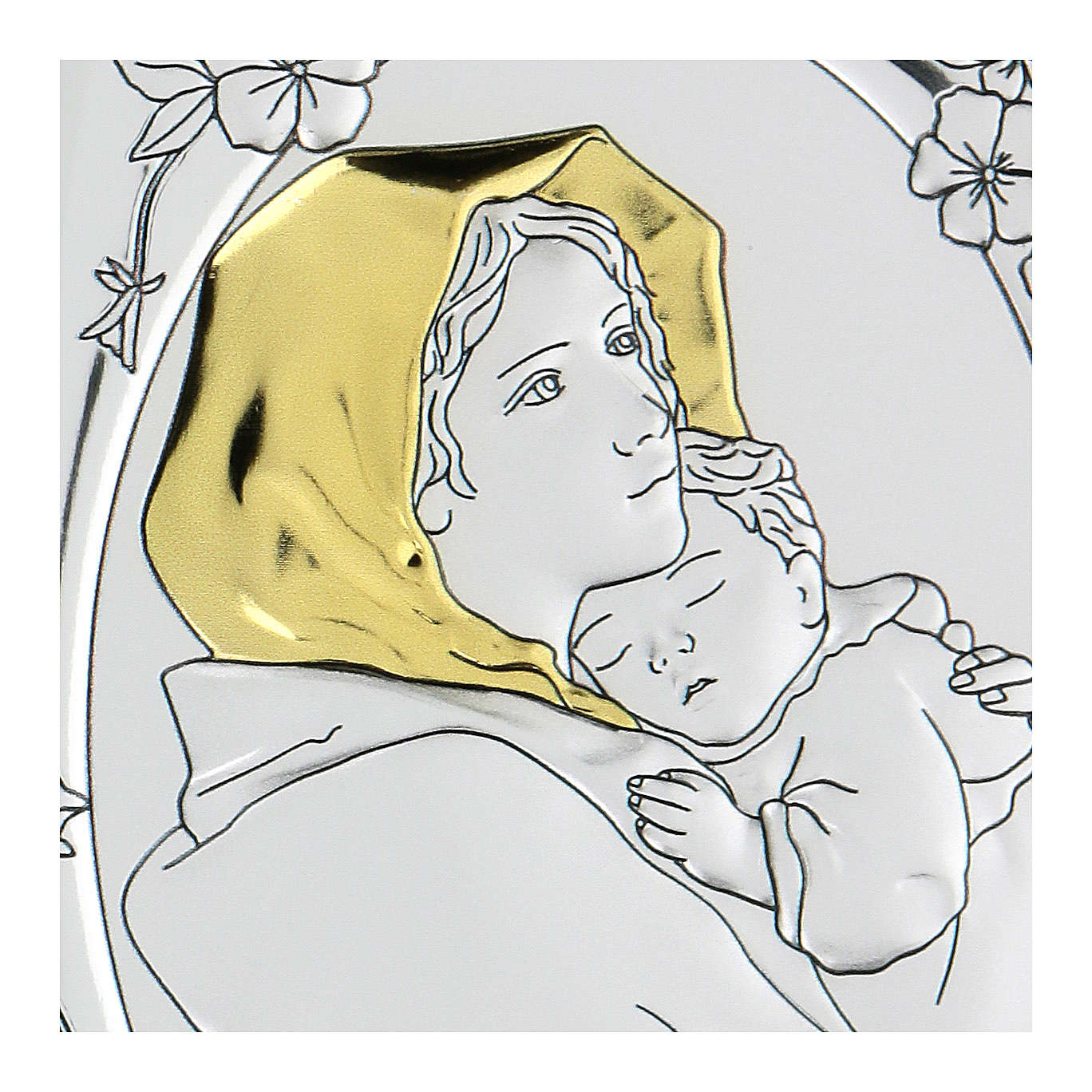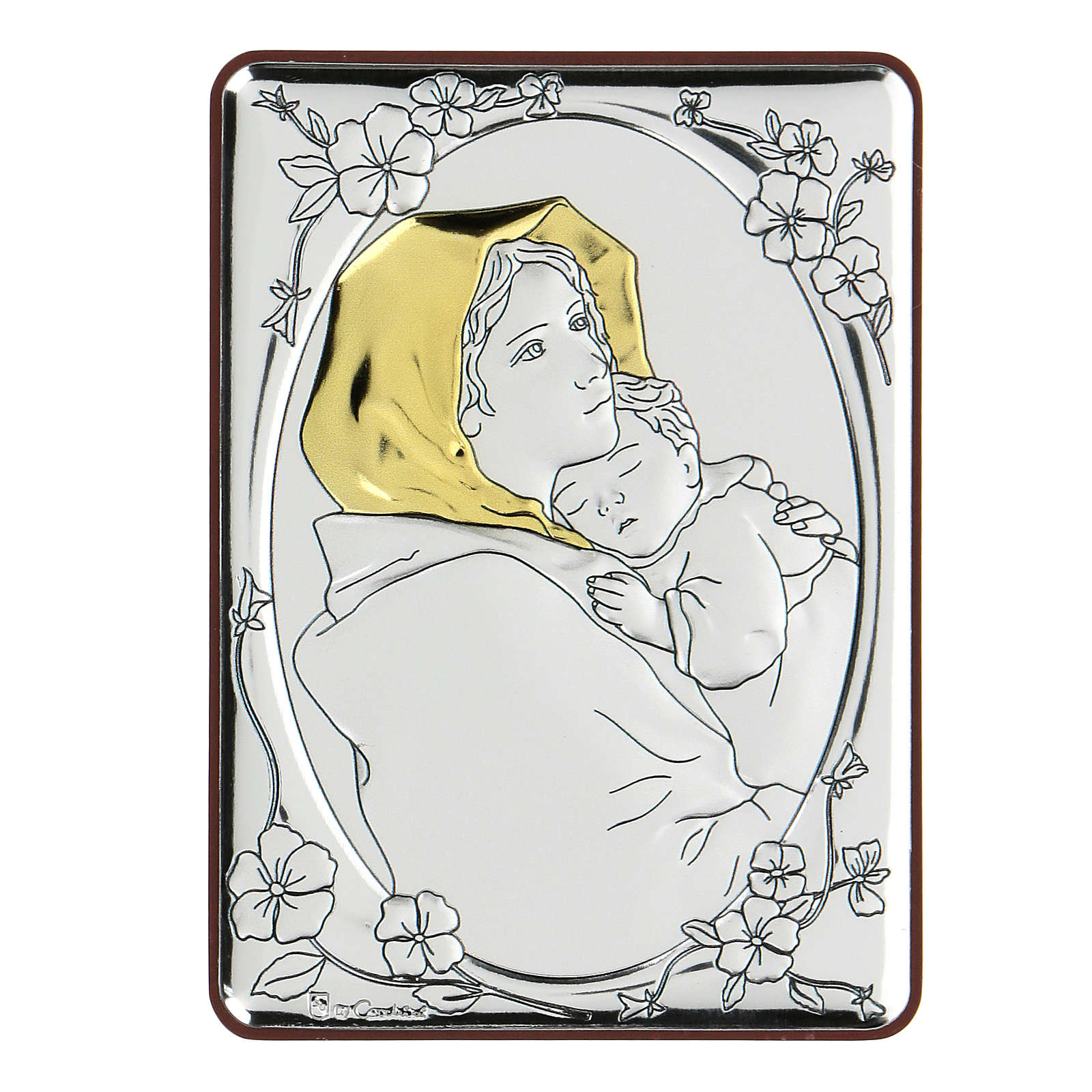 Baixo-relevo bilaminado Madonnina de Ferruzzi 10x7 cm. Artigo realizado e decorado em prata bilamidada com acabamento contra oxidação, de