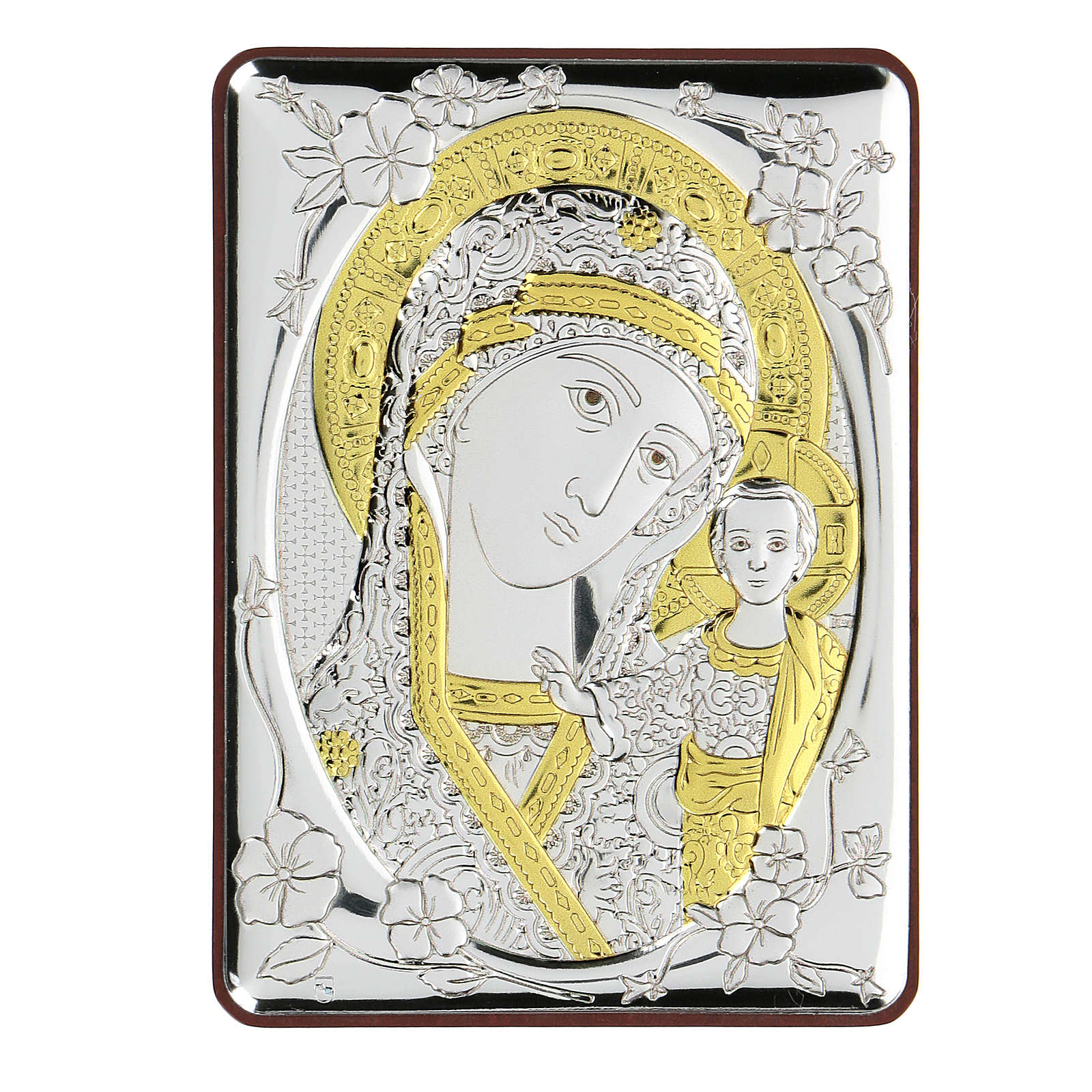 Baixo-relevo bilaminado Mãe de Deus 10x7 cm. Artigo realizado e decorado em prata bilamidada com acabamento contra oxidação, de