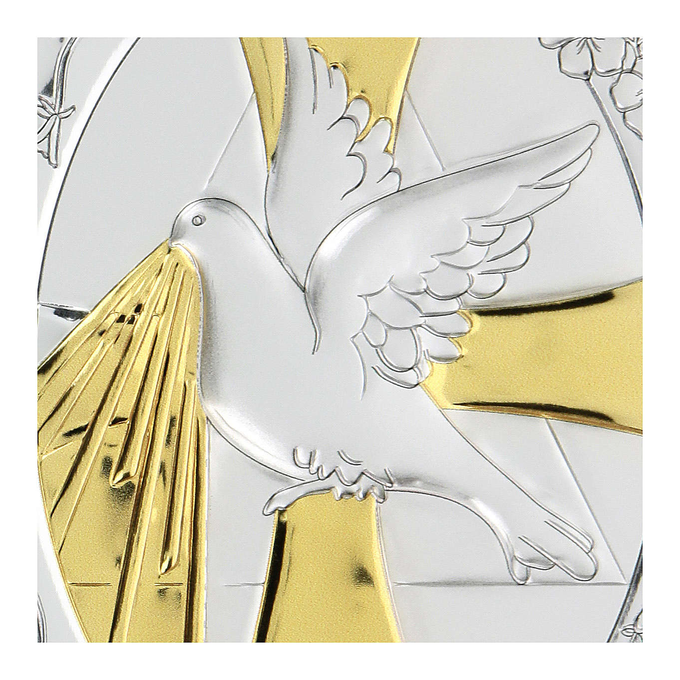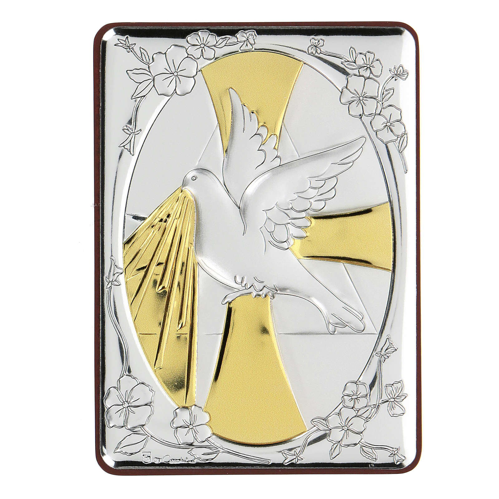 Baixo-relevo bilaminado Pomba da paz 10x7 cm. Artigo realizado e decorado em prata bilamidada com acabamento contra oxidação, de