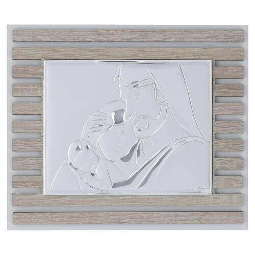 Moldura em madeira com Sagrada Família em prata bilaminada 20x25 cm