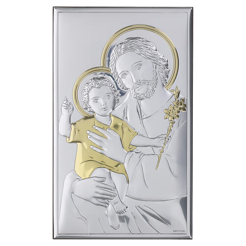 Quadro bilaminado Valenti ouro e prata São José e Jesus 20x12 cm.