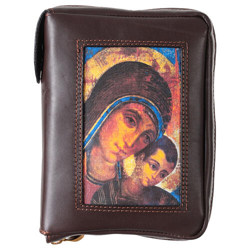 Capa em couro com fecho de correr Nossa Senhora de Kiko Bíblia de Jerusalém EDB.