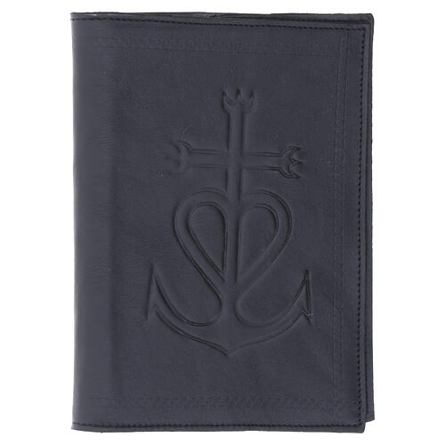 Capa Lit. Horas 4 vol. couro preto Âncora da Salvação. Capa para Liturgia das Horas 4 volumes, edição Vaticana, em couro preto com imagem da Âncora da Salvação.Capa inteiramente realizada na Itália por uma marroquinaria artesanal com materiais de alta qualidade, inteiramente trabalhados à mão.