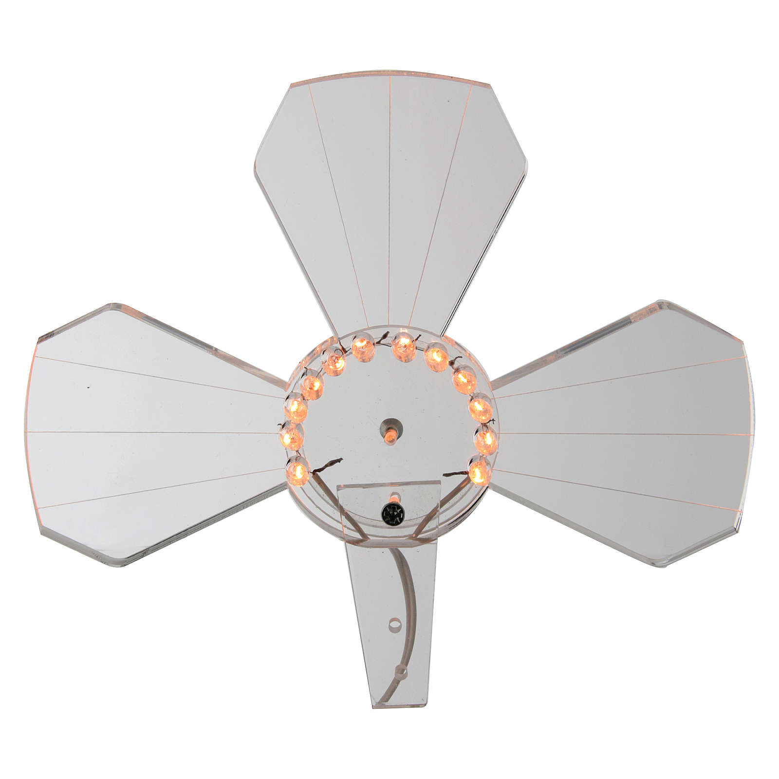 Resplendor em acrílico luminoso lâmpadas. Resplendor luminoso em acrílico transparente, realizado em forma de cruz com ligação eléctrica 220V para alimentar as lâmpadas no centro.