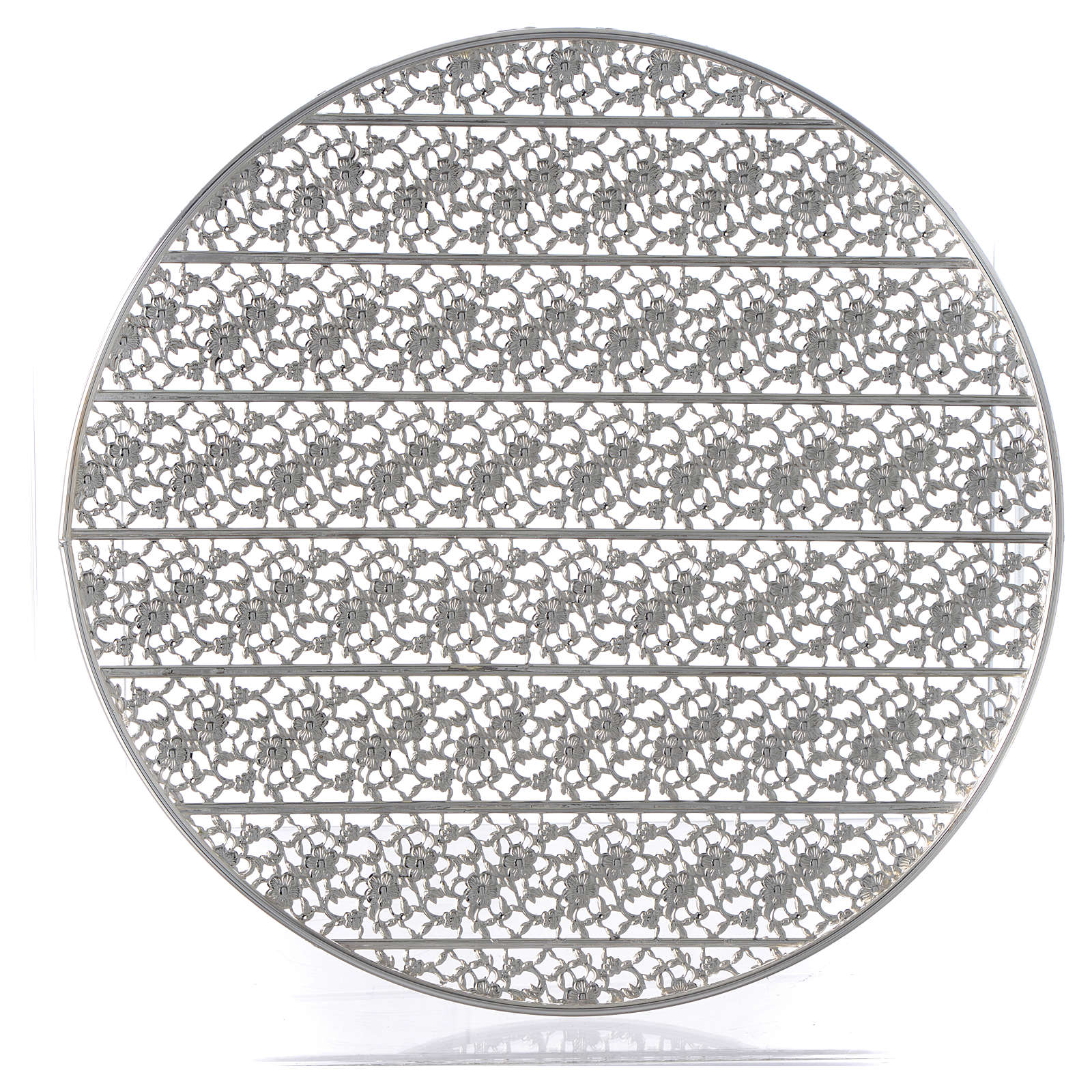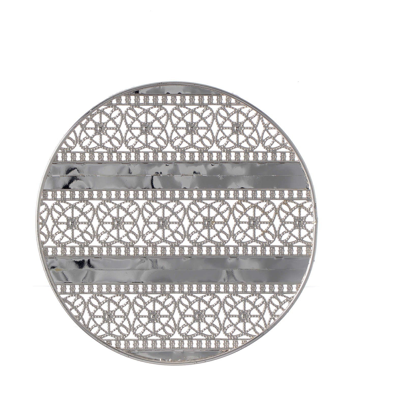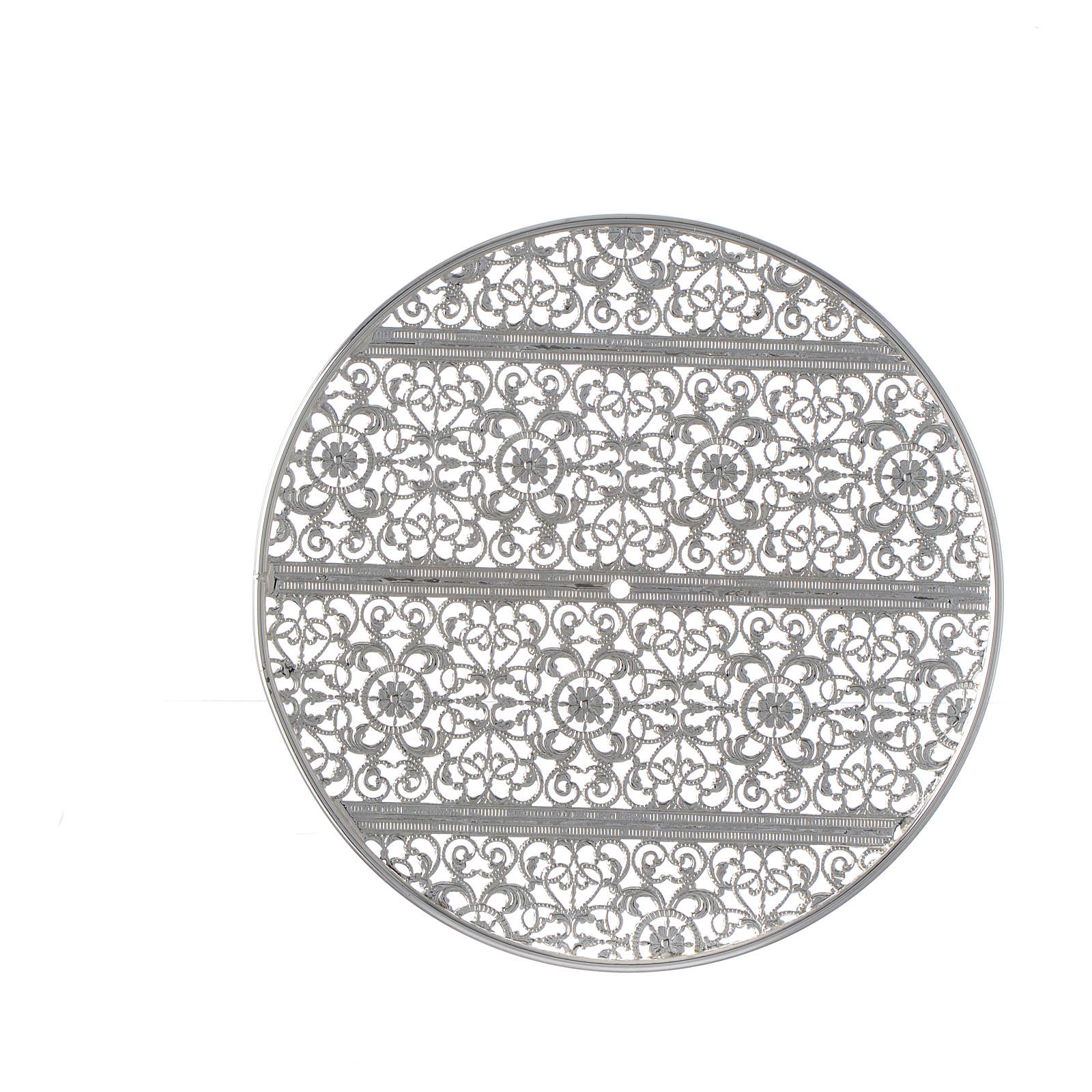 Resplendor latão filigrana prateada e motivo geométrico. Resplendor para imagens sagradas realizado de forma artesanal na Itália em latão com filigrana prateada em motivo geométrico.