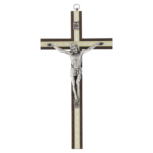 Crucifixo em carpino escuro com embutido central e Cristo em metal 25 cm