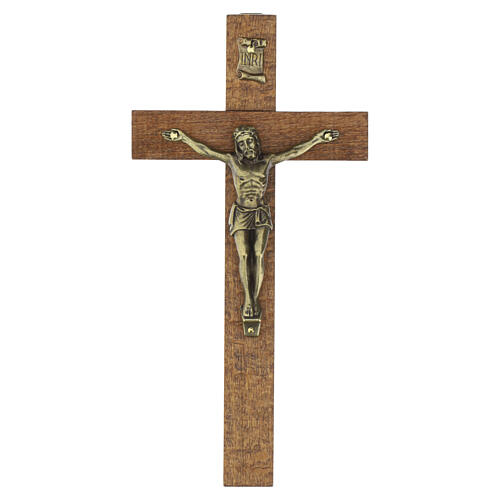 Cruz de parede 20x10 cm em madeira escura com corpo em latão