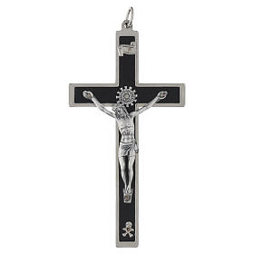 Crucifixo em madeira de carpino escura corpo metálico prateado 15 cm