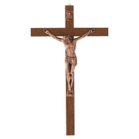Cruz de parede em madeira 40x20 cm com corpo de Cristo em cobre fundido