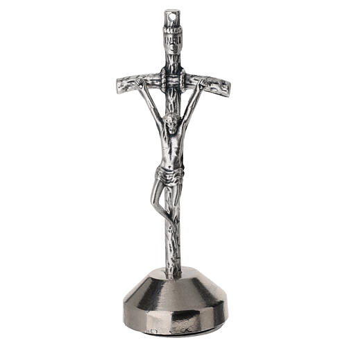 Crucifixo magnético em zamak de 6,5 cm de altura total com base magnética circular de 2 cm de diâmetro.