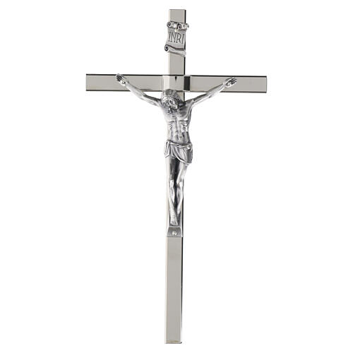 Cruz de parede 30x15 cm em metal polido com corpo em zamak prateado