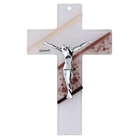 Cruz em resina e vidro de Murano efeito madeira branca 13,5x10 cm