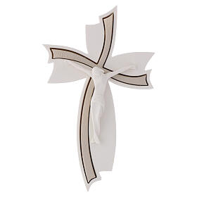 Crucifixo de parede branco com inserções douradas corpo em resina opaca 25x15 cm