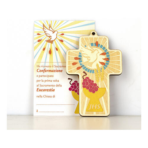 - Cruz Primeira Comunhão Crisma madeira pintada combinação de símbolos e diploma