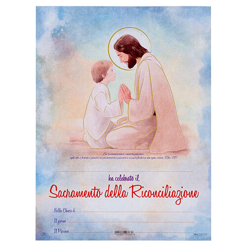 Este diploma é uma maravilhosa lembrança de participação no Sacramento da Penitência e inclui uma citação do Evangelho de João em italiano.