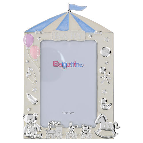 Porta-retrato tenda de circo azul e brinquedos 20x15 cm Bagutta.