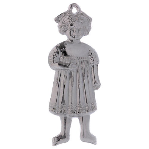 Ex-voto menina de pé prata 925 ou metal 13 cm. Ex-voto em forma de menina de pé de 13 cm de altura, disponível em duas versões:- metal- prata 925 (10,5 gramas).Este símbolo votivo é também disponível, mediante solicitação, em prata 800 com banho de ouro ou em metal dourado.