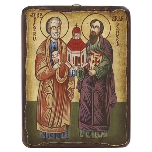 Ícone romeno pintado São Pedro e São Paulo 18x15 cm.