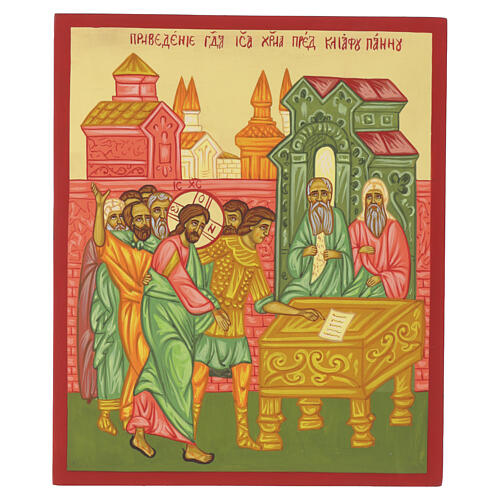 Ícone pintado estilo russo Jesus perante Caifás 30x25 cm
