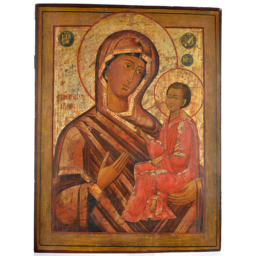 Ícone antigo russo Mãe de Deus de Tikhvin 68x57 cm séc. 19. Ícone antigo russo do século 19 da Mãe de Deus de Tikhvin, uma das imagens milagrosas as mais veneradas da Rússia.