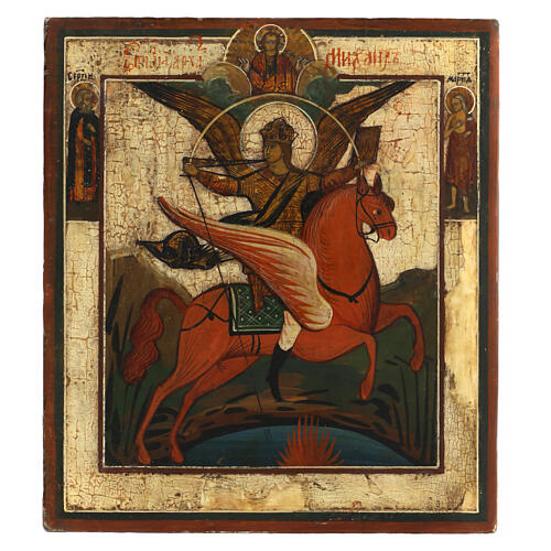 Este ícone representa a batalha entre São Miguel e Satanás, com o arcanjo numa paisagem colinoso com a espada na mão.
