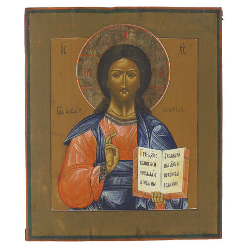 Ícone russo antigo Cristo Pantocrator séc. XIX 31x26 cm