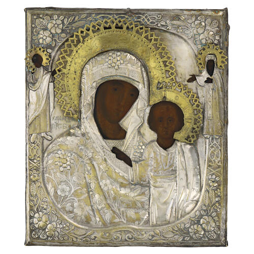 Ícone Russo antigo Mãe de Deus de Cazã século XIX 30x28x2 cm.