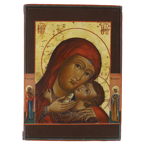 Ícone russo antigo Nossa Senhora de Korsun séc. XIX 33x27 cm.