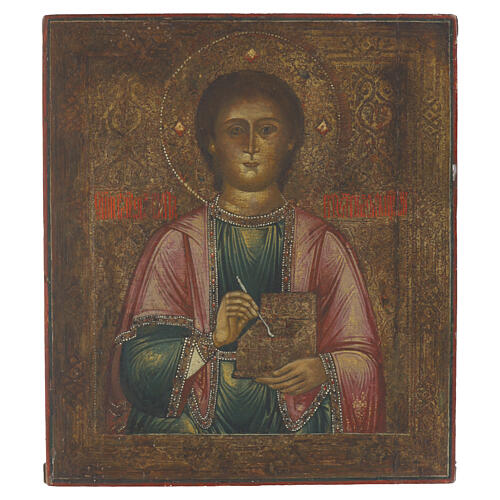 Ícone russo São Pantaleão séc. XIX 35x30 cm